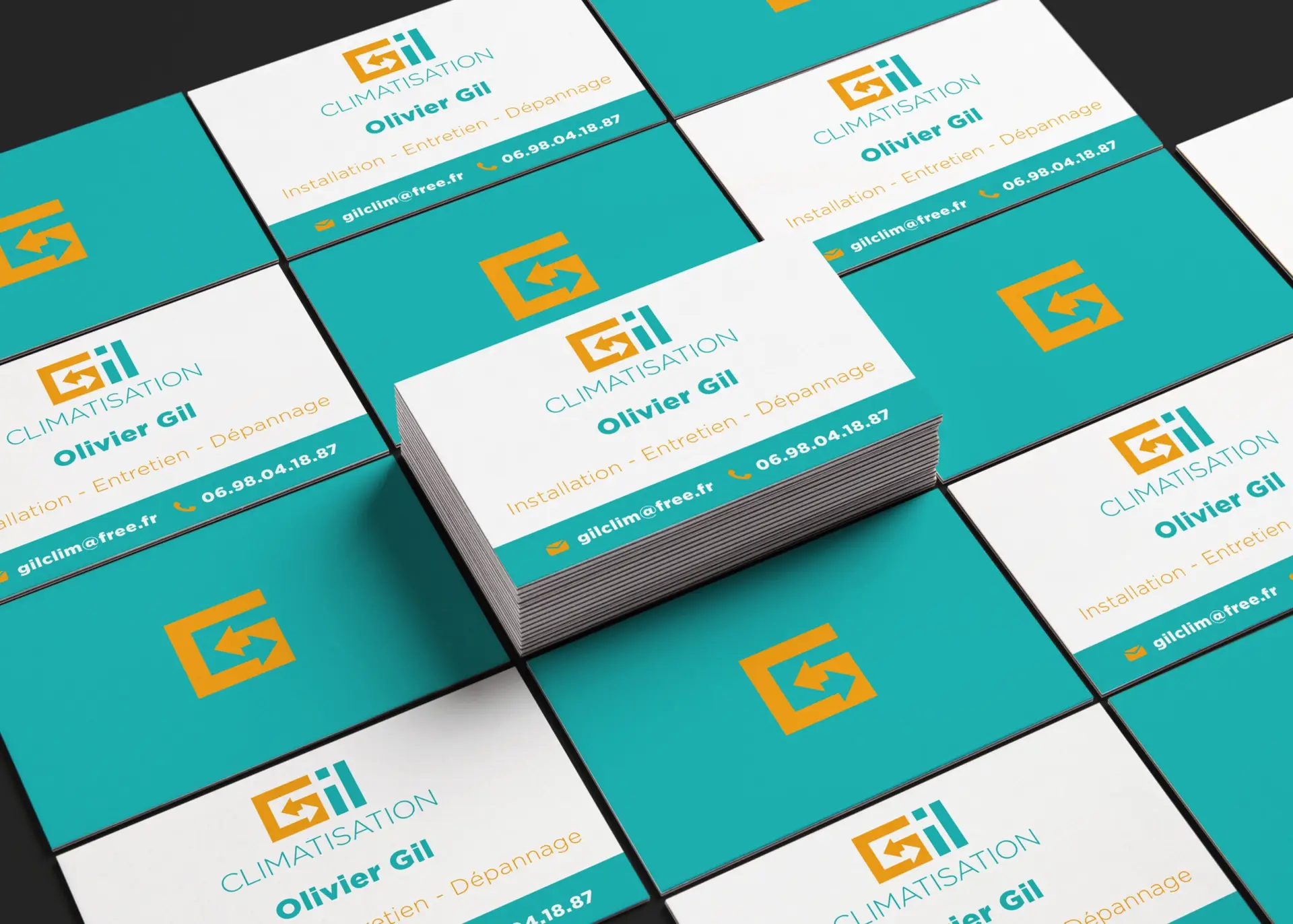 En résumé, l'identité visuelle de Gil Climatisation a été soigneusement conçue pour refléter son expertise, son engagement écologique et son positionnement unique sur le marché de la climatisation et des pompes à chaleur.